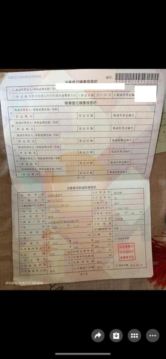 初次登记日期 2019-08-20 车辆名称 凯马 锐菱