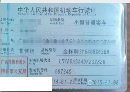 车牌号 桂****** 品牌 金杯
