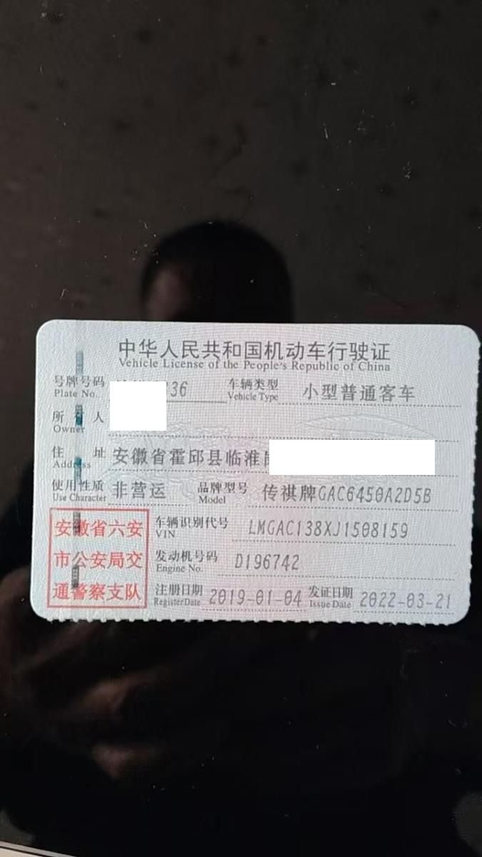 车牌号 皖****** 品牌 传祺