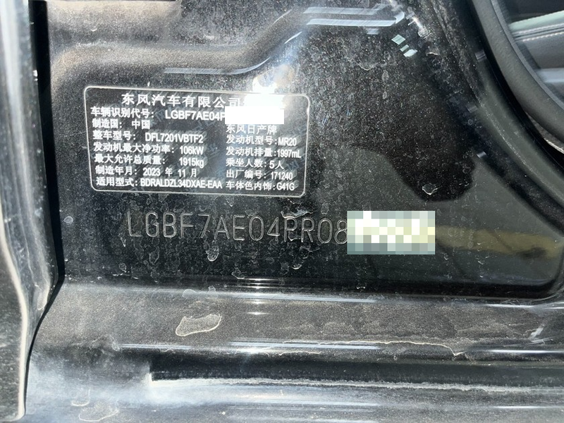 初次登记日期 2024-01-02 车辆名称 日产 天籁