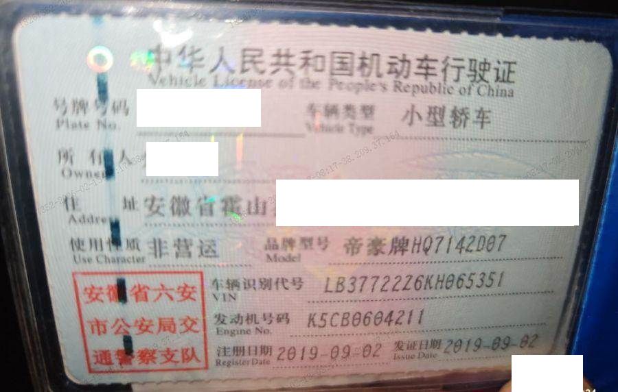 车牌号 皖****** 品牌 吉利