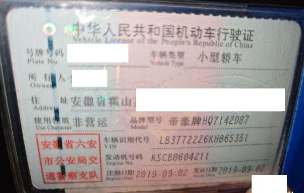 初次登记日期 2019-09-02 车辆名称 吉利汽车 帝豪GS