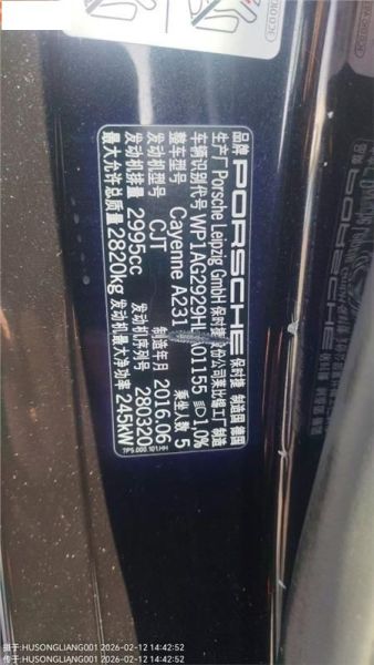 初次登记日期 2016-11-10 车辆名称 保时捷 Cayenne