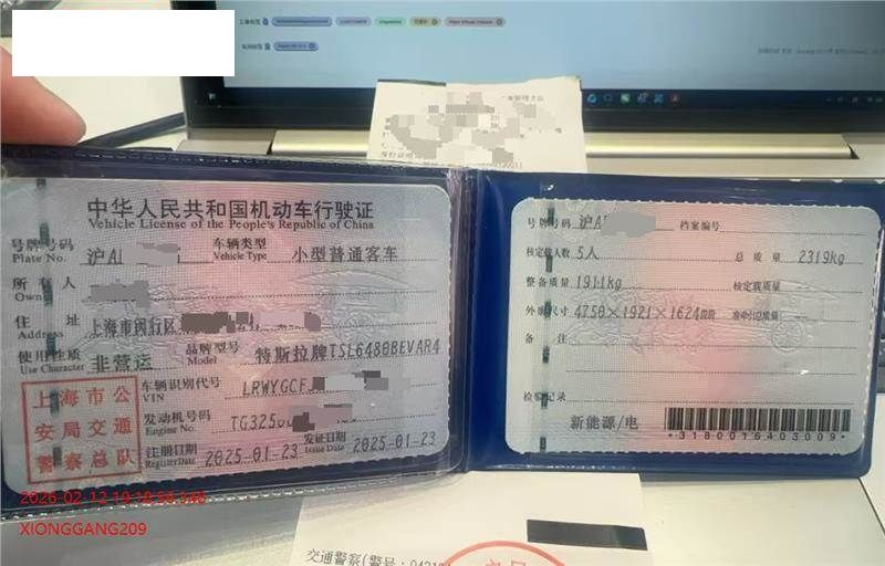 初次登记日期 2025-01-23 车辆名称 特斯拉 Model