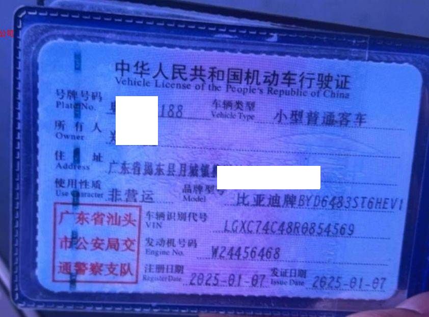 初次登记日期 2025-01-07 车辆名称 比亚迪 宋PLUS