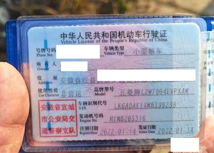 车牌号 皖****** 品牌 五菱