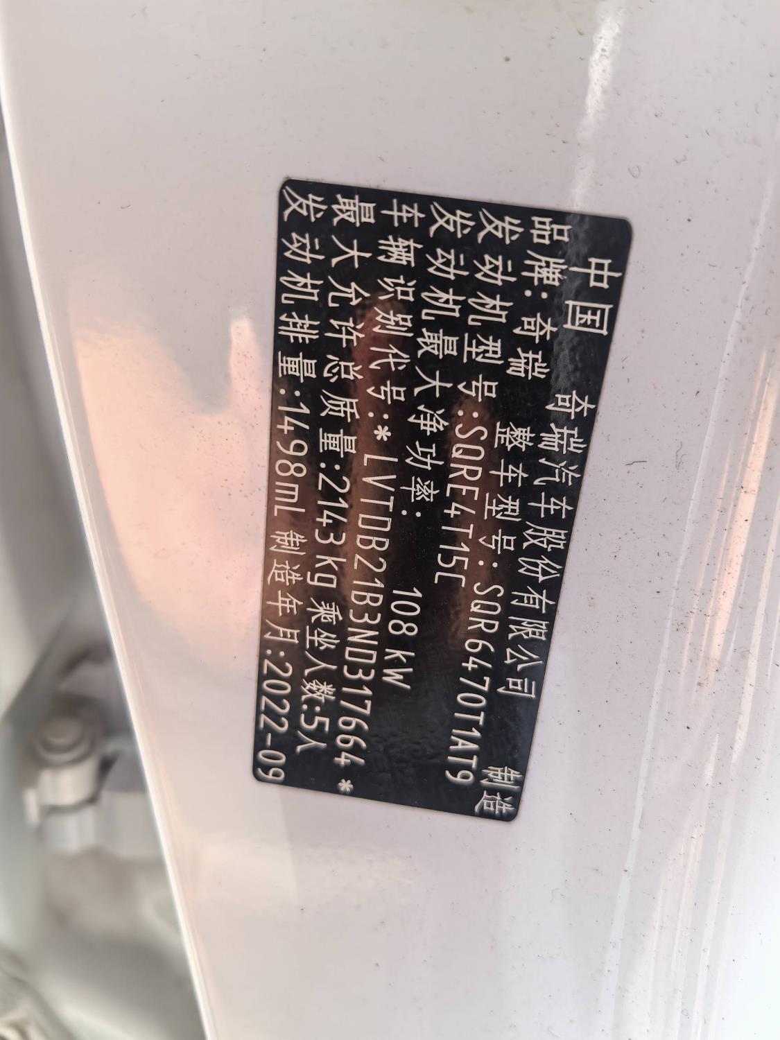 车牌号 皖****** 品牌 奇瑞