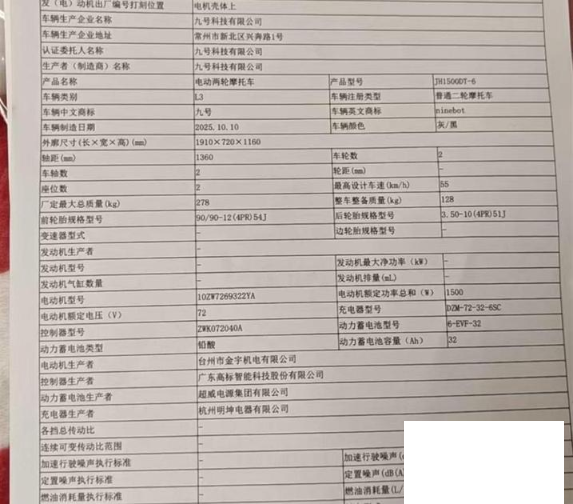 初次登记日期 2025-10-10 车辆名称 九号牌