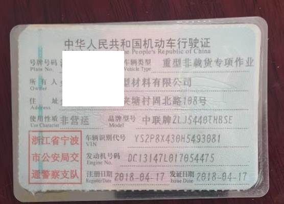 车辆归属地 浙江省宁波市 车辆停放仓库 浙江省余姚市余姚市