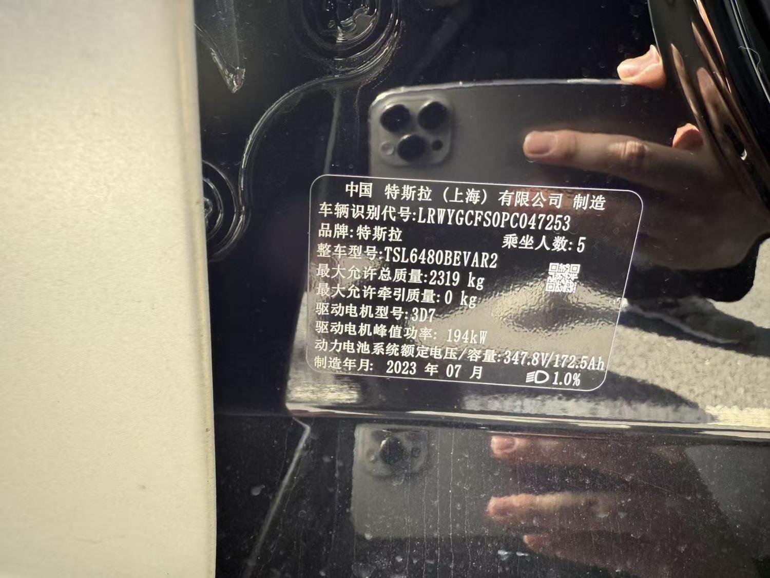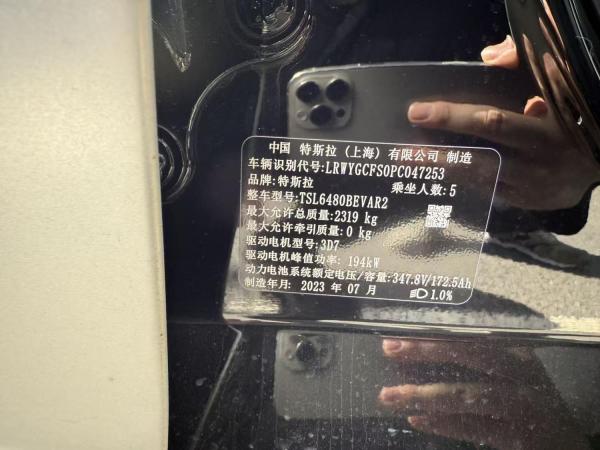 初次登记日期 2023-07-16 车辆名称 特斯拉 Model