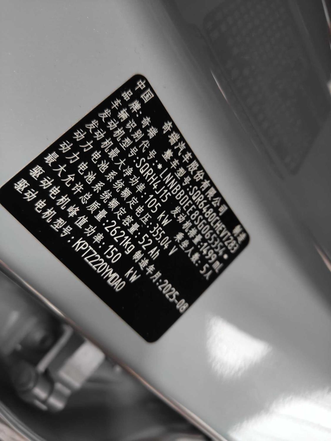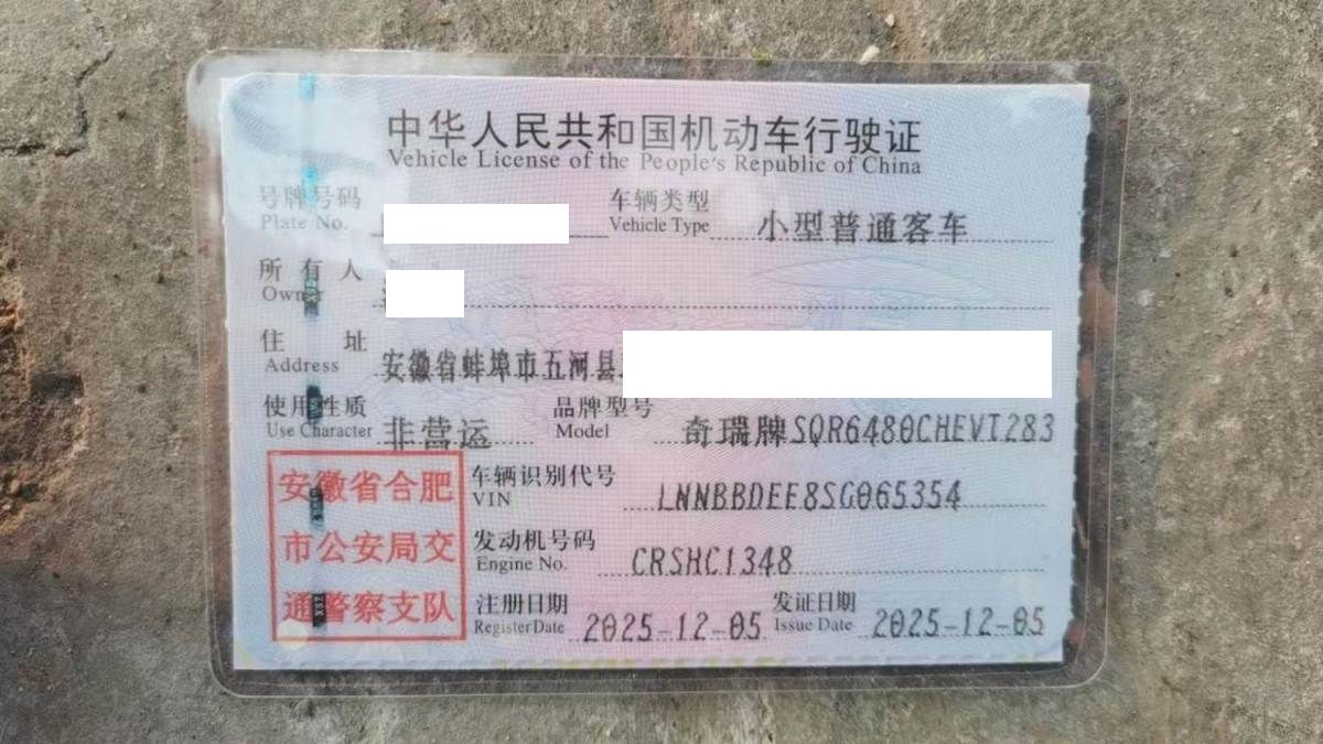 初次登记日期 2025-12-05 车辆名称 奇瑞风云 风云