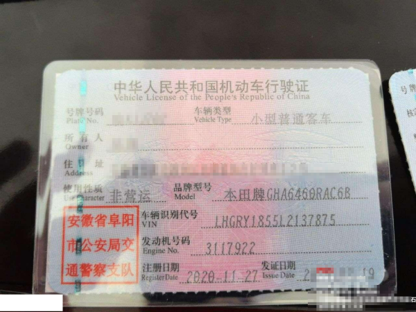 车牌号 皖****** 品牌 本田