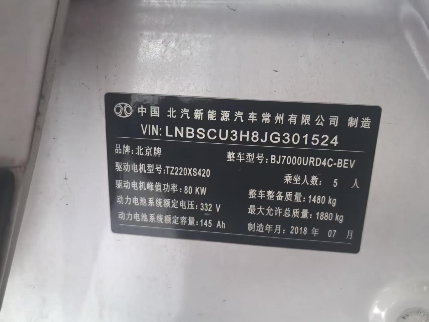 初次登记日期 2018-12-20 车辆名称 北汽新能源