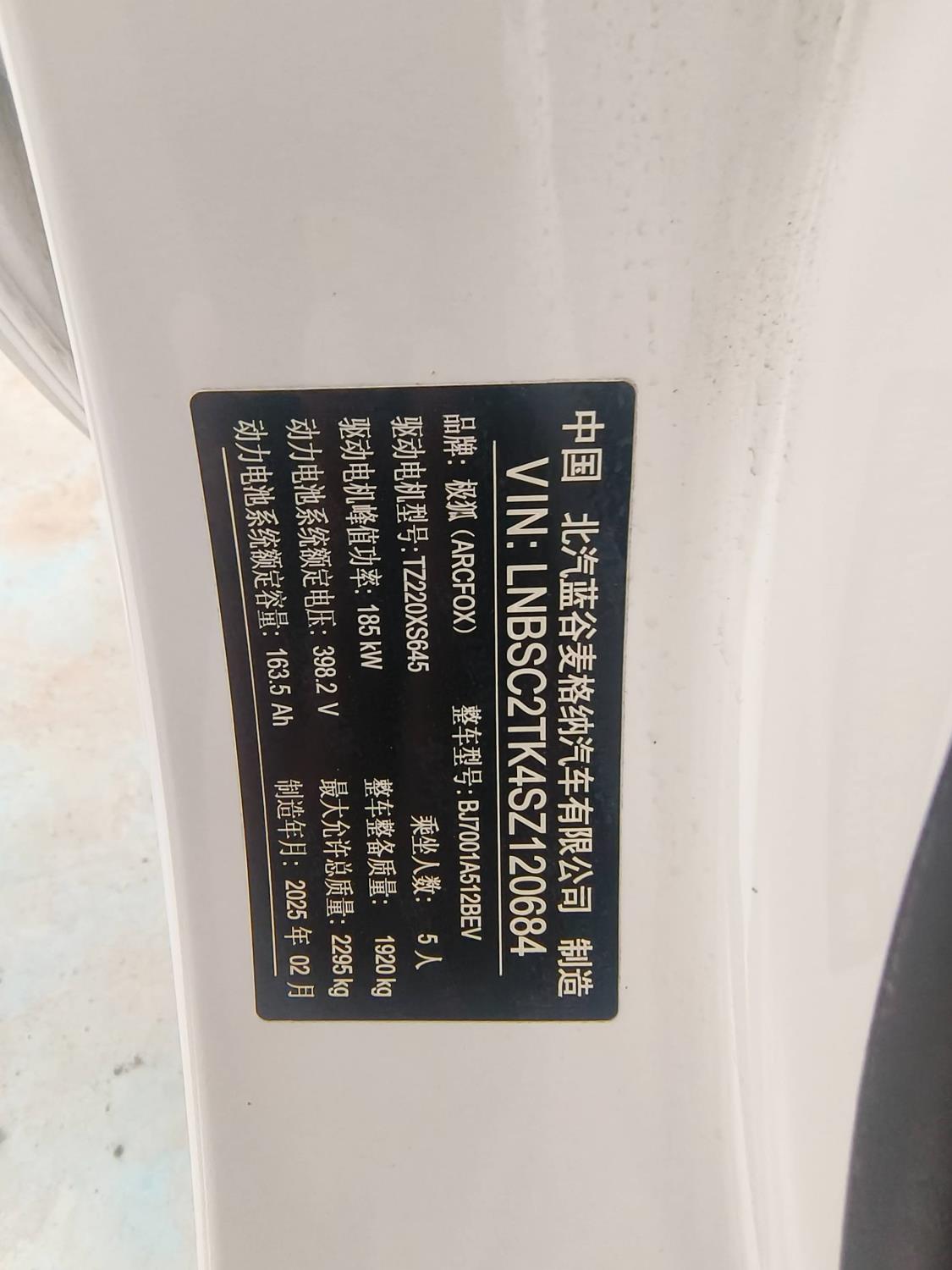 初次登记日期 2025-03-28 车辆名称 ARCFOX极狐