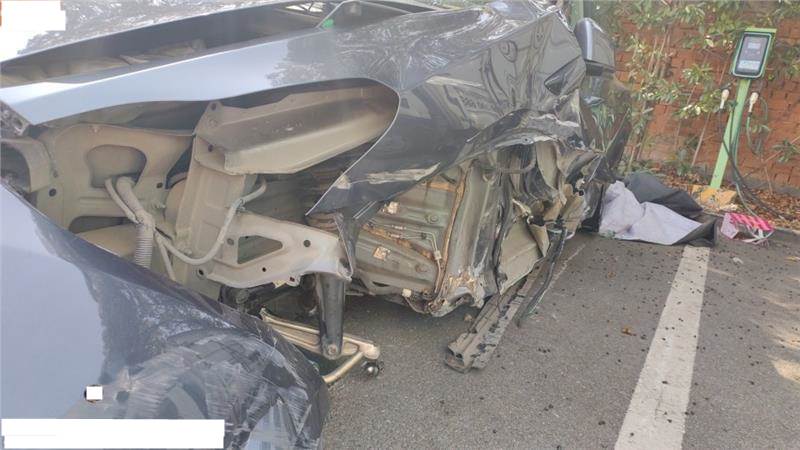 无法确认是否二次事故,后续不得以二次事故拒绝保全,全车断电,车辆锁死,无法拍摄钢印号,底盘损失,动力电池可能隐损