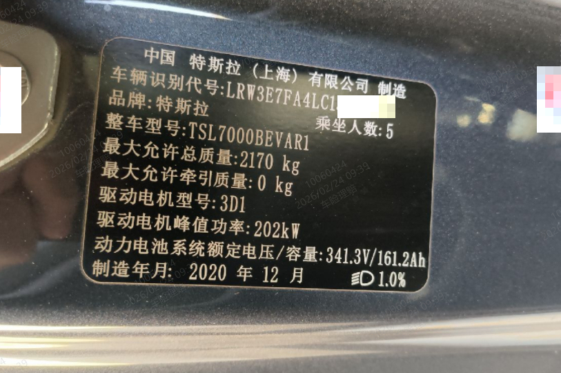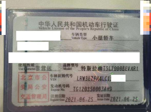 车牌号 京****** 品牌 特斯拉