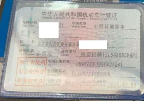 初次登记日期 2025-12-08 车辆名称 特斯拉 Model