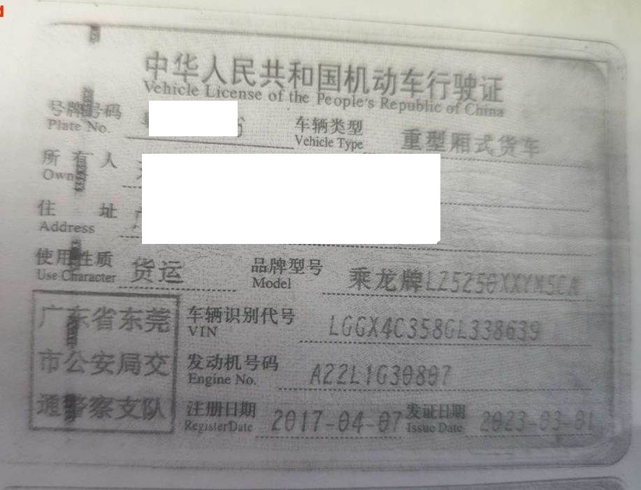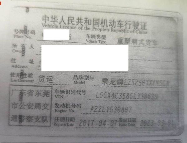 车牌号 粤****** 品牌 乘龙
