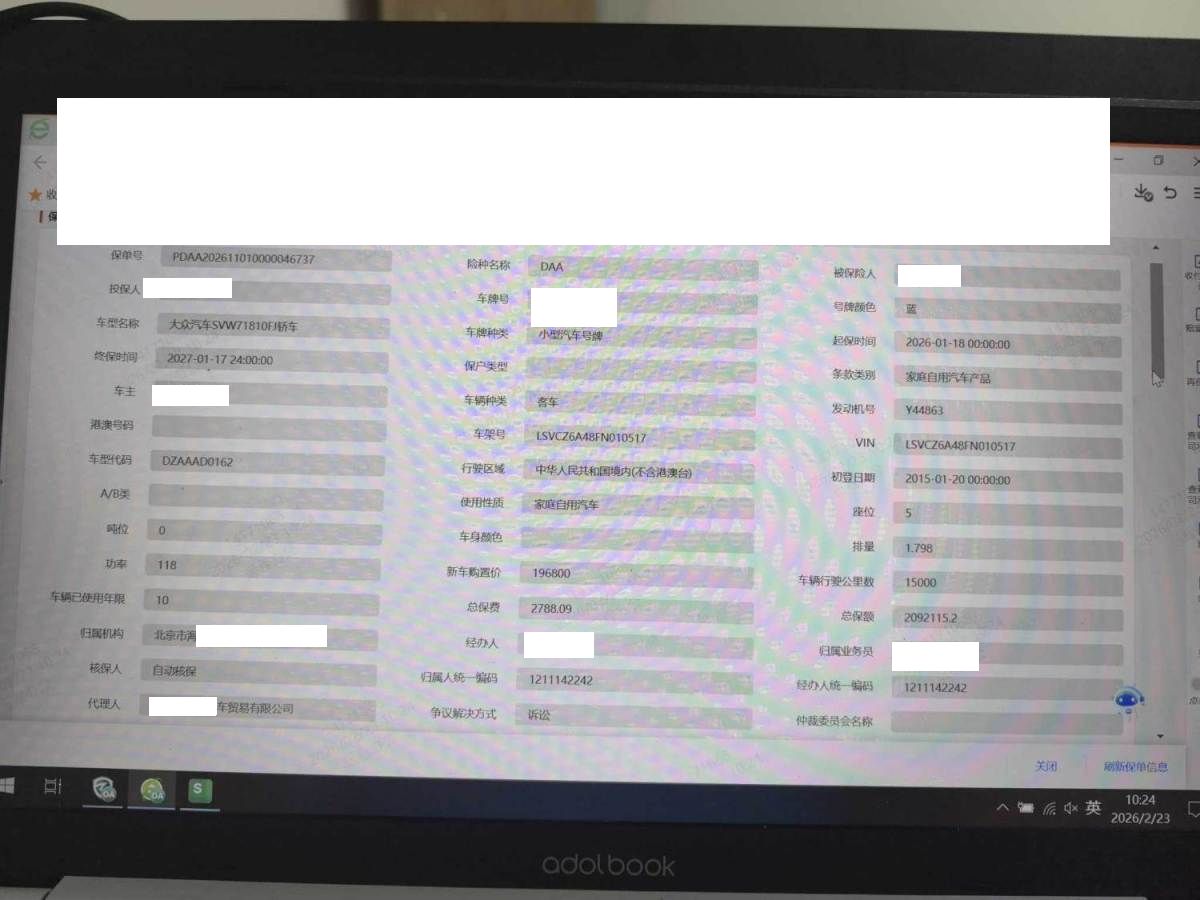 初次登记日期 2015-01-20 车辆名称 大众 帕萨特