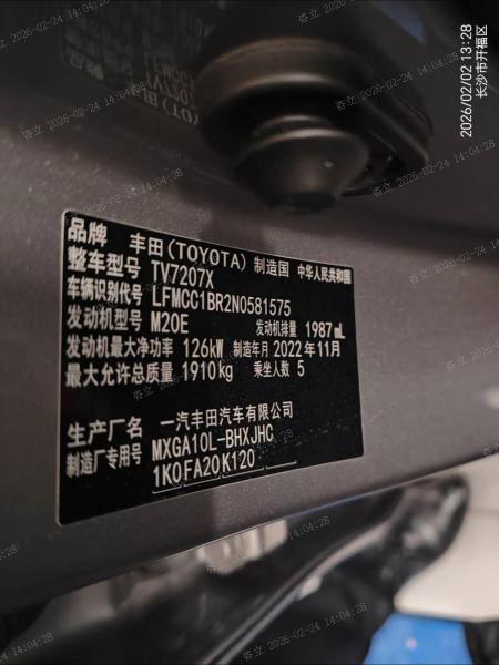 初次登记日期 2023-04-12 车辆名称 丰田 卡罗拉锐放