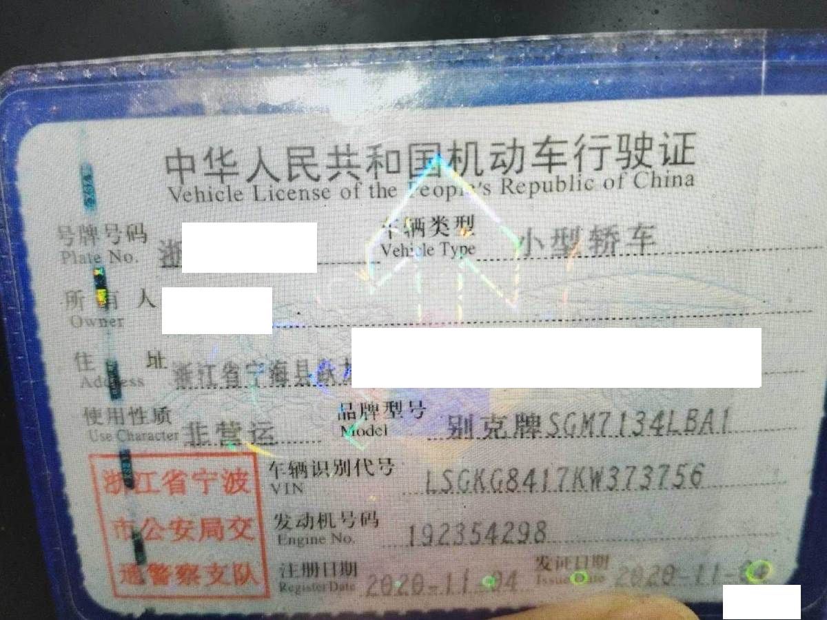 车牌号 浙****** 品牌 别克