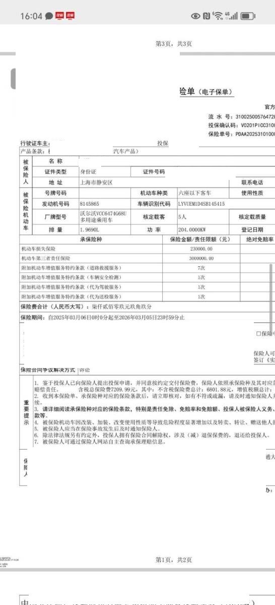 车牌号 沪****** 品牌 沃尔沃