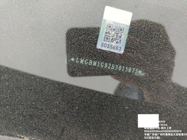 底盘号码 LMGBM1G82S3015075 变速箱类型 手自一体