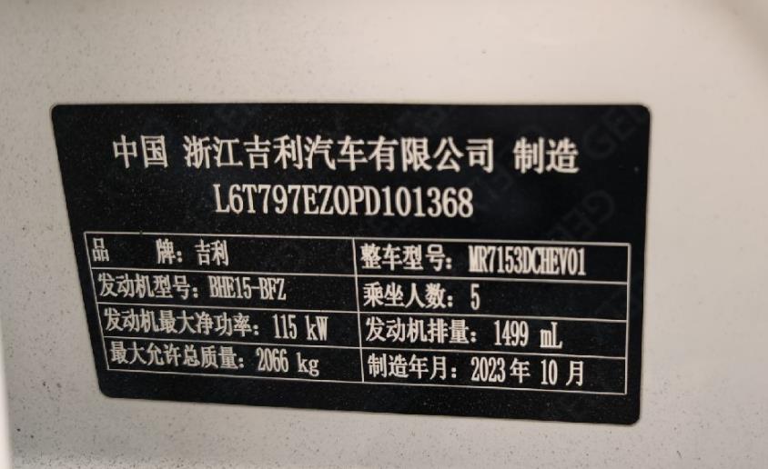 初次登记日期 2024-01-09 车辆名称 吉利汽车