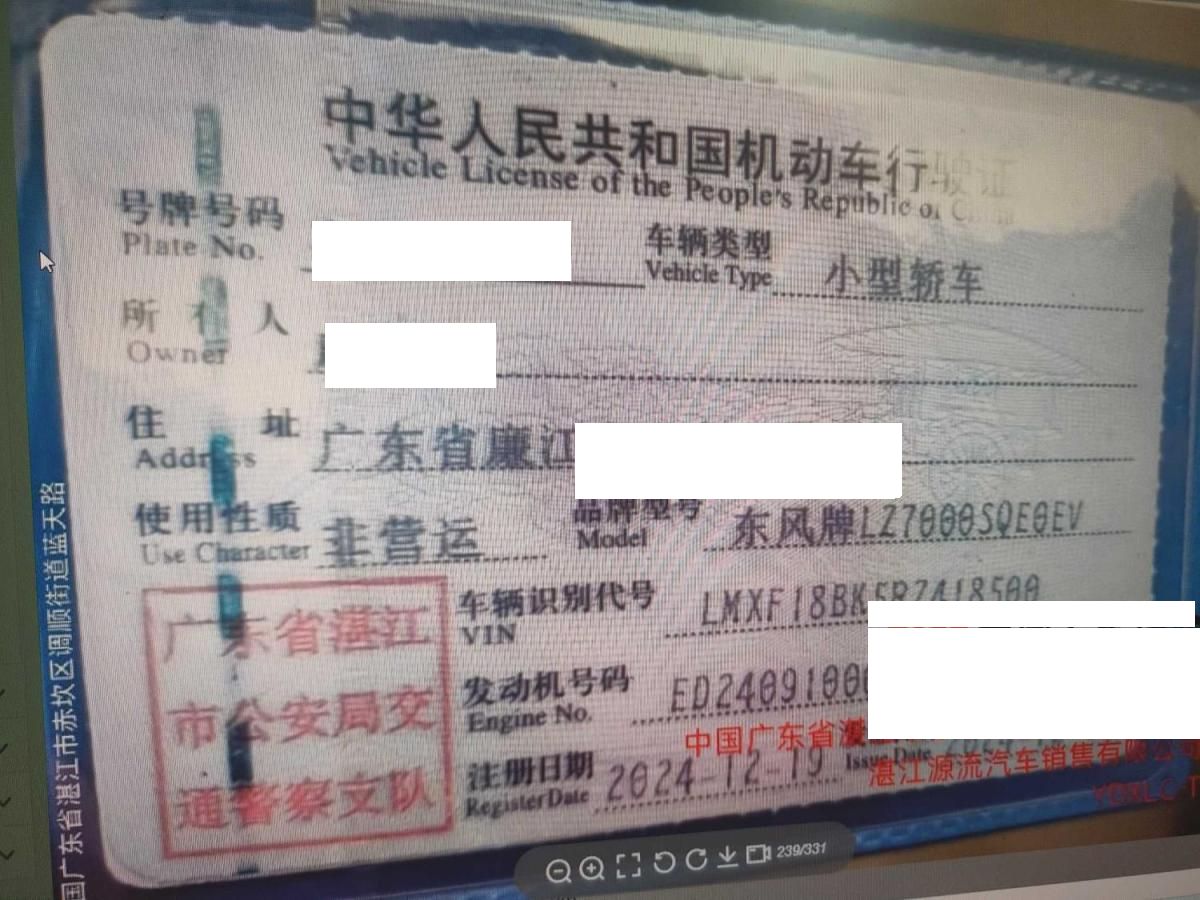 初次登记日期 2024-12-19 车辆名称 东风风行 星海