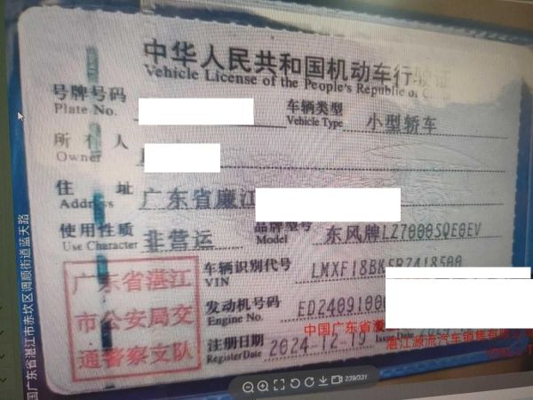 车辆归属地 广东省湛江市 车辆停放仓库 广东省湛江市湛江市