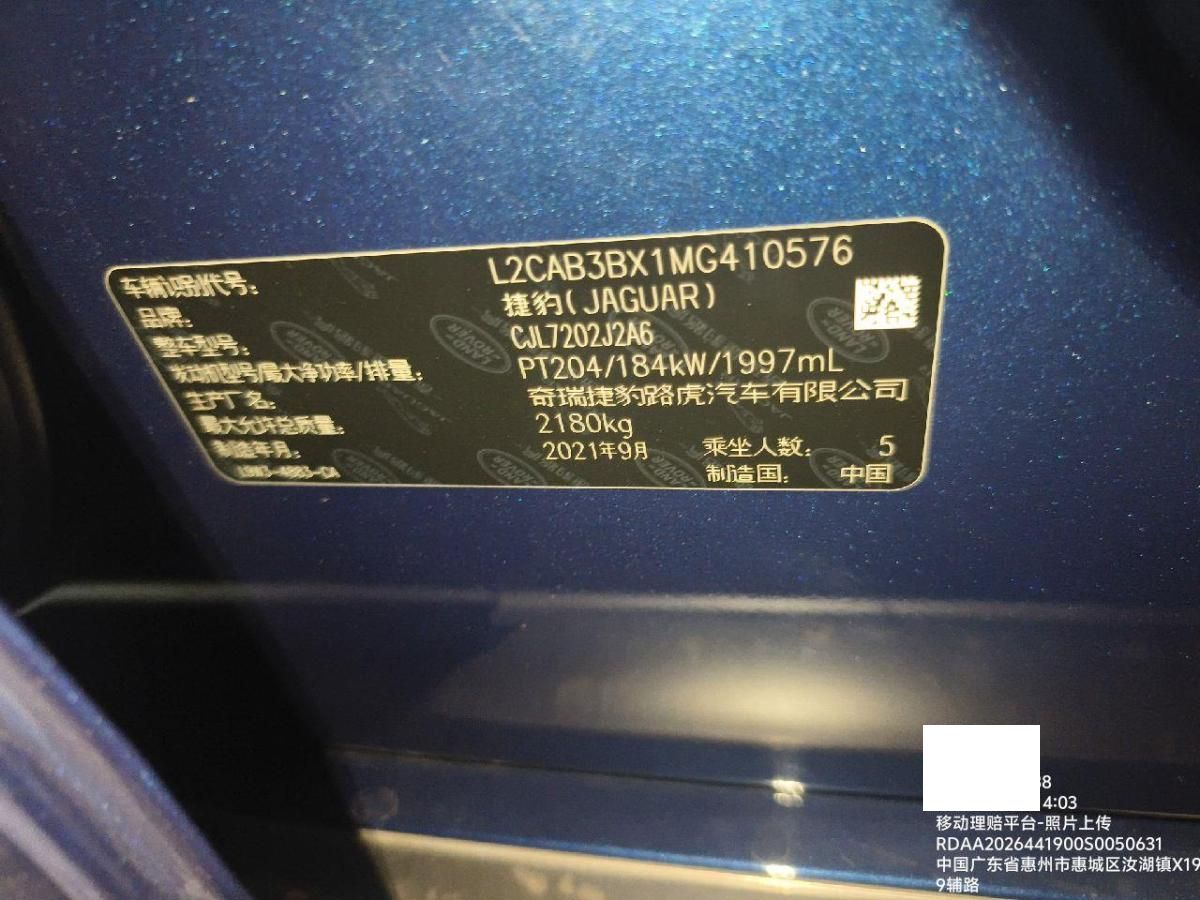 初次登记日期 2022-04-14 车辆名称 捷豹XEL