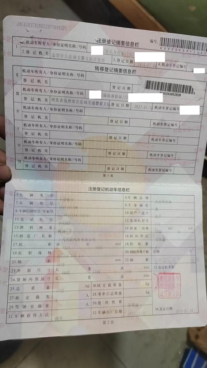 车架号是否受损 未知 使用性质 非营运