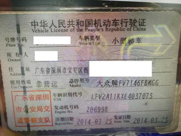 初次登记日期 2014-03-25 车辆名称 大众 速腾