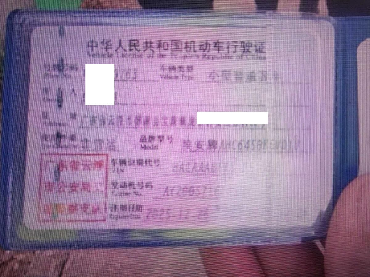 初次登记日期 2025-12-26 车辆名称 埃安 AION