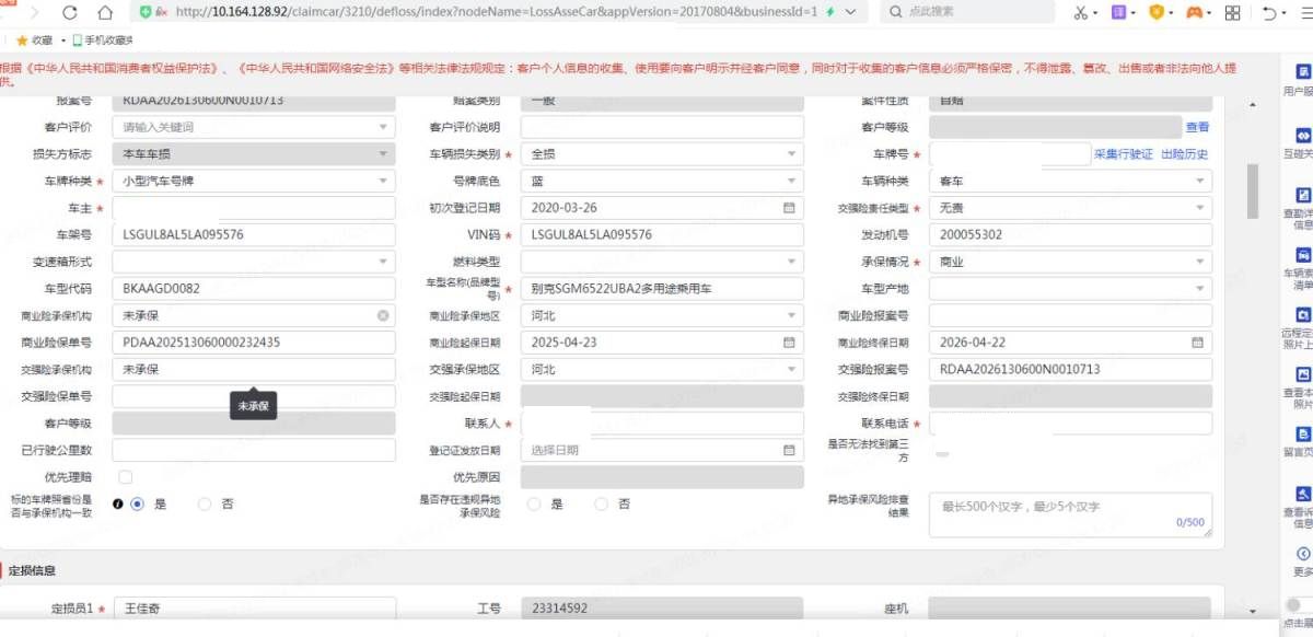 车架号是否受损 未知 使用性质 非营运
