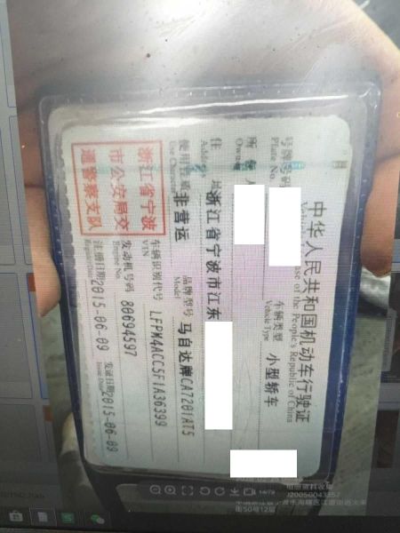 车牌号 浙****** 品牌 马自达