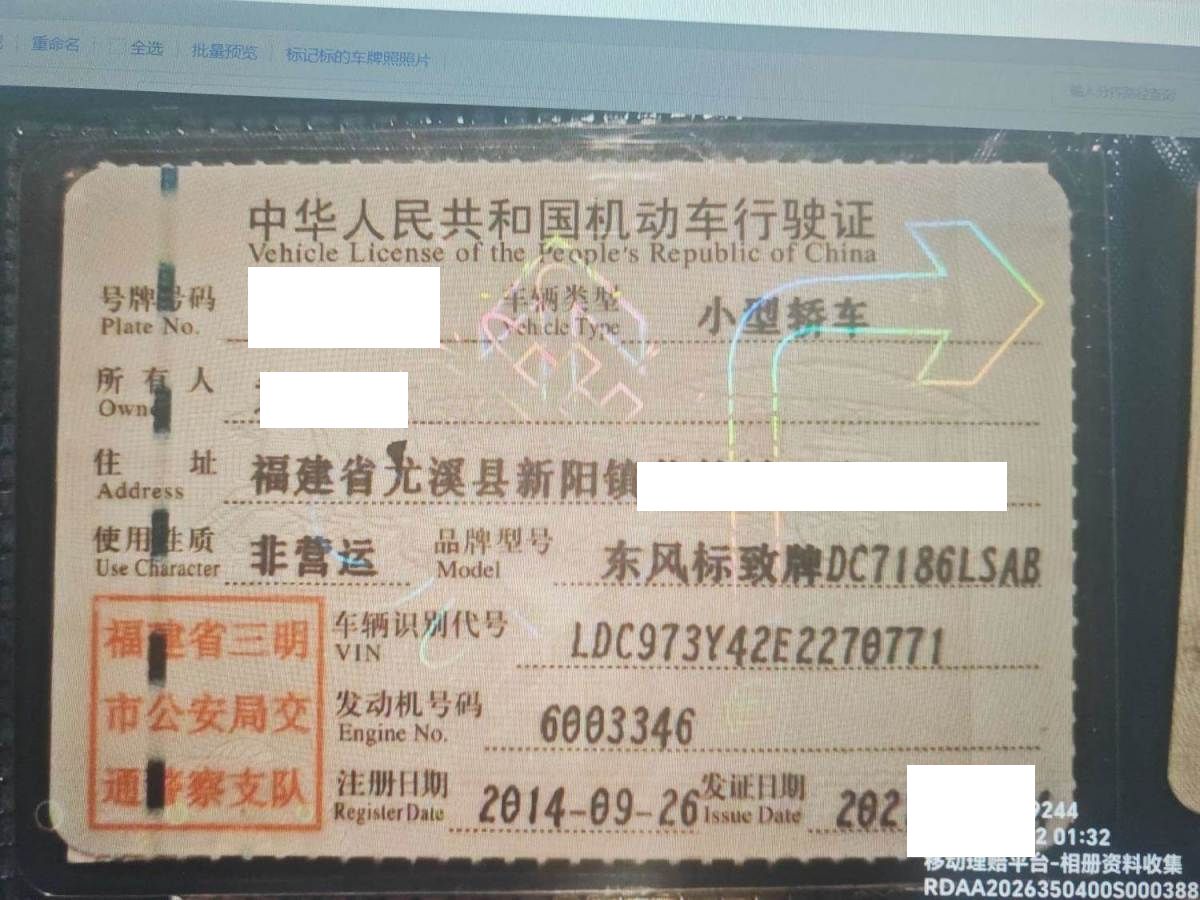 车牌号 闽****** 品牌 东风标致