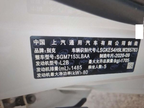 初次登记日期 2020-10-15 车辆名称 别克 英朗