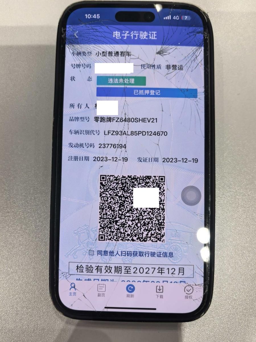 初次登记日期 2023-12-19 车辆名称 零跑汽车 零跑