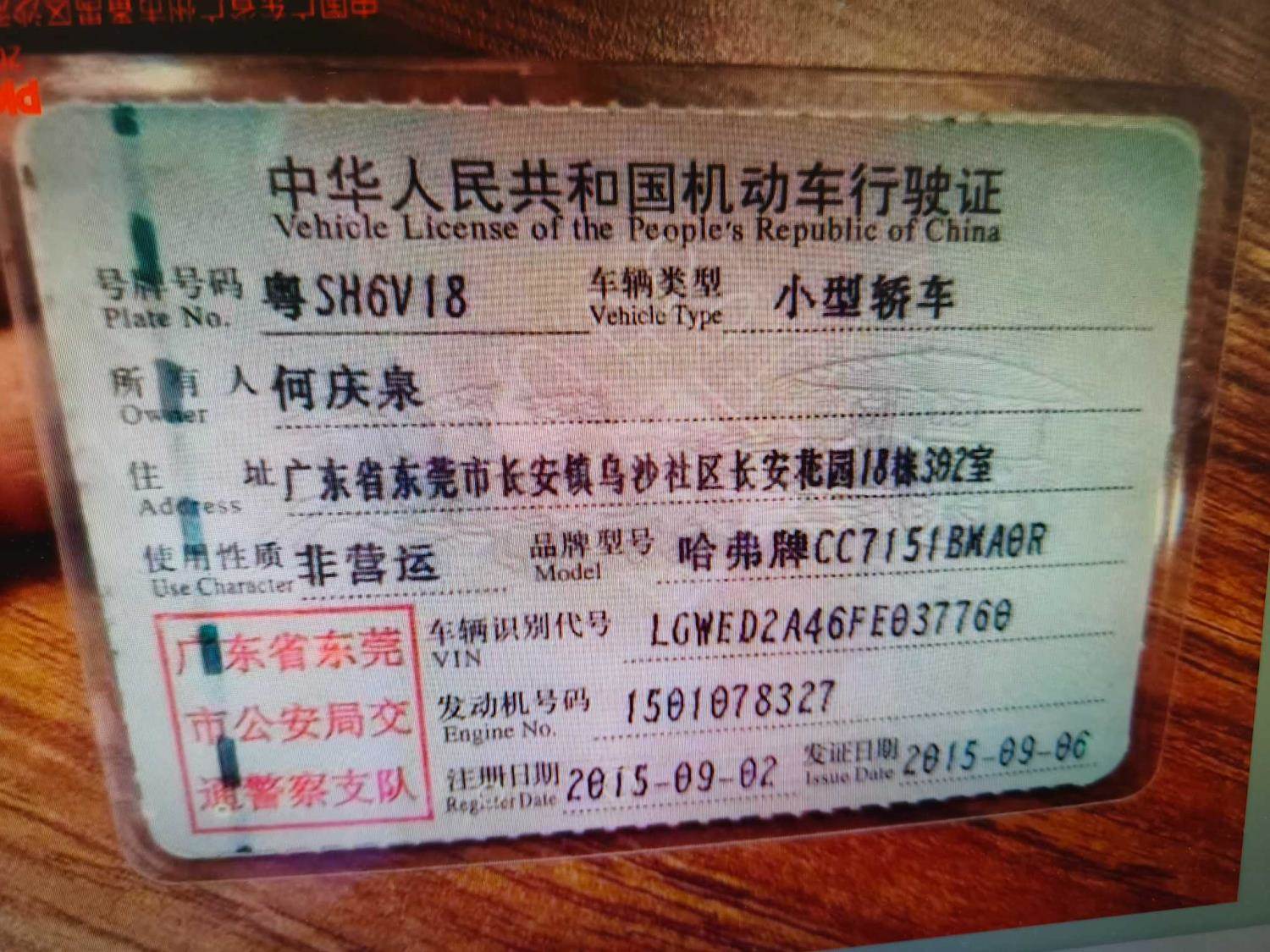 车牌号 粤****** 品牌 哈弗