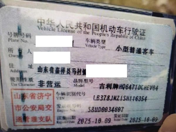 车牌号 鲁****** 品牌 吉利