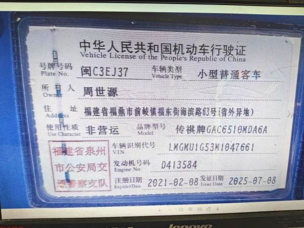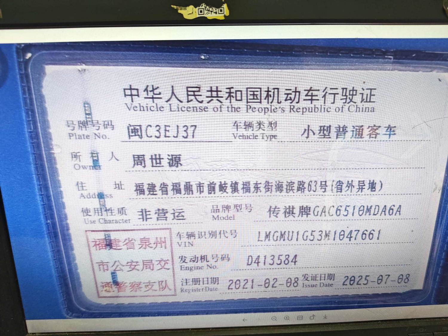 车牌号 闽****** 品牌 传祺
