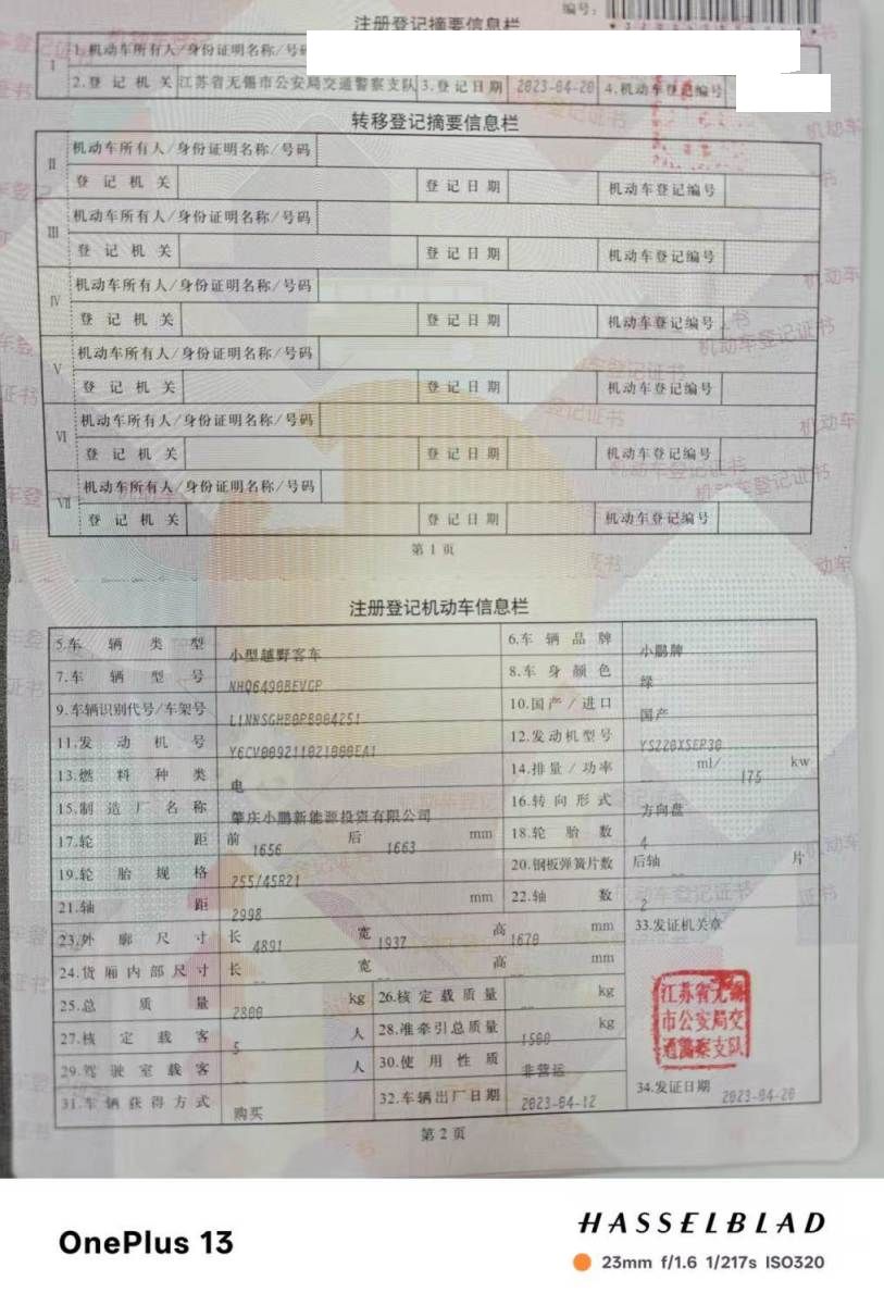 初次登记日期 2023-04-20 车辆名称 小鹏牌