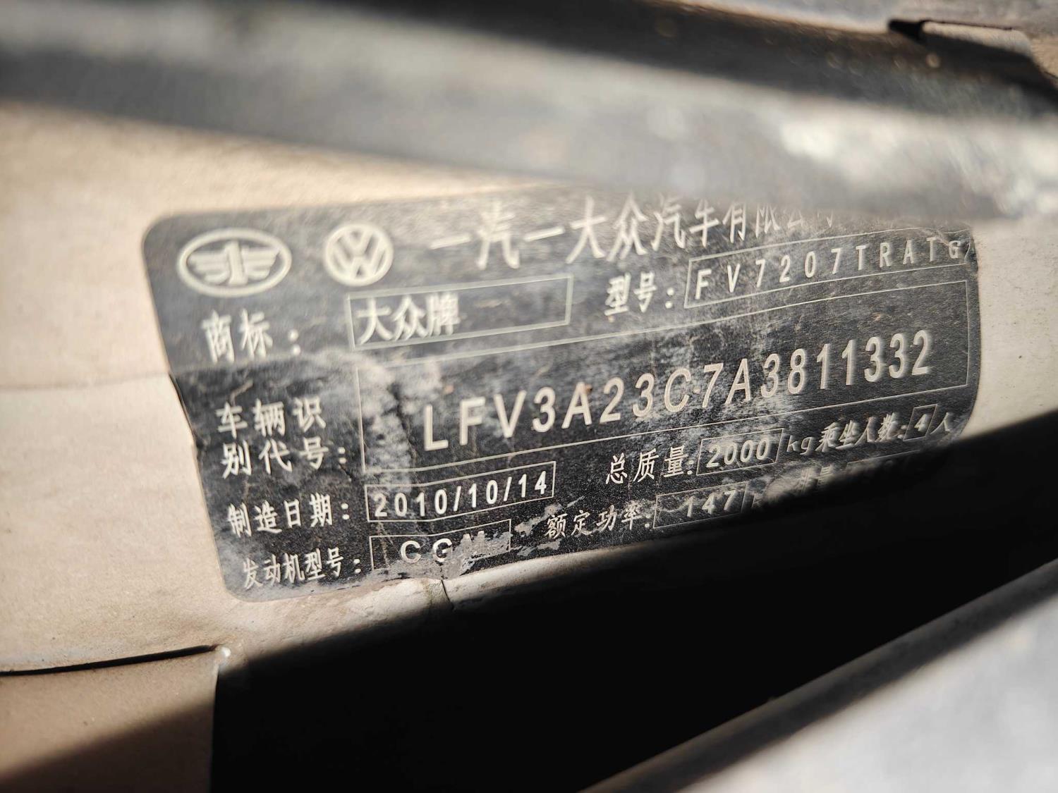 初次登记日期 2010-11-12 车辆名称 一汽-大众CC
