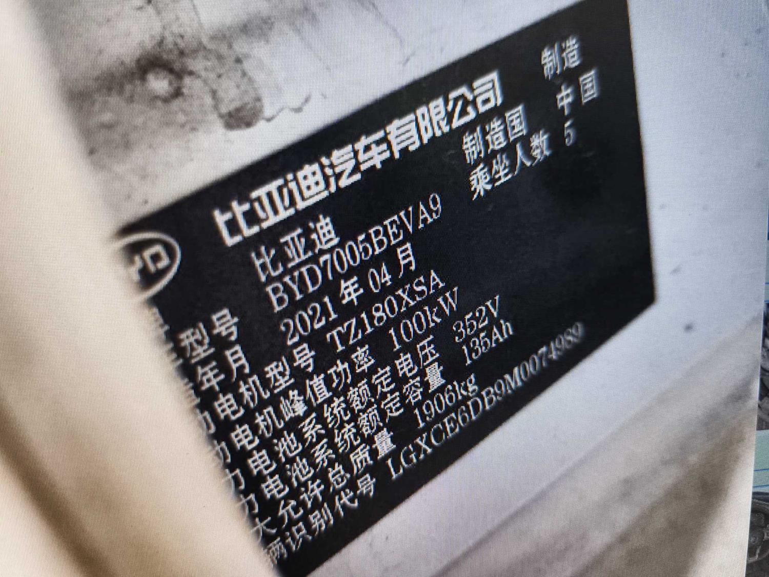 初次登记日期 2021-06-24 车辆名称 比亚迪 秦新能源