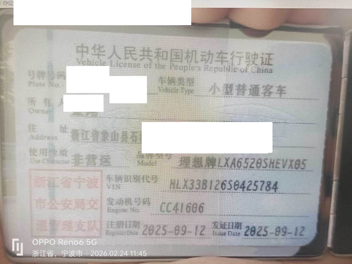 初次登记日期 2025-09-12 车辆名称 理想汽车