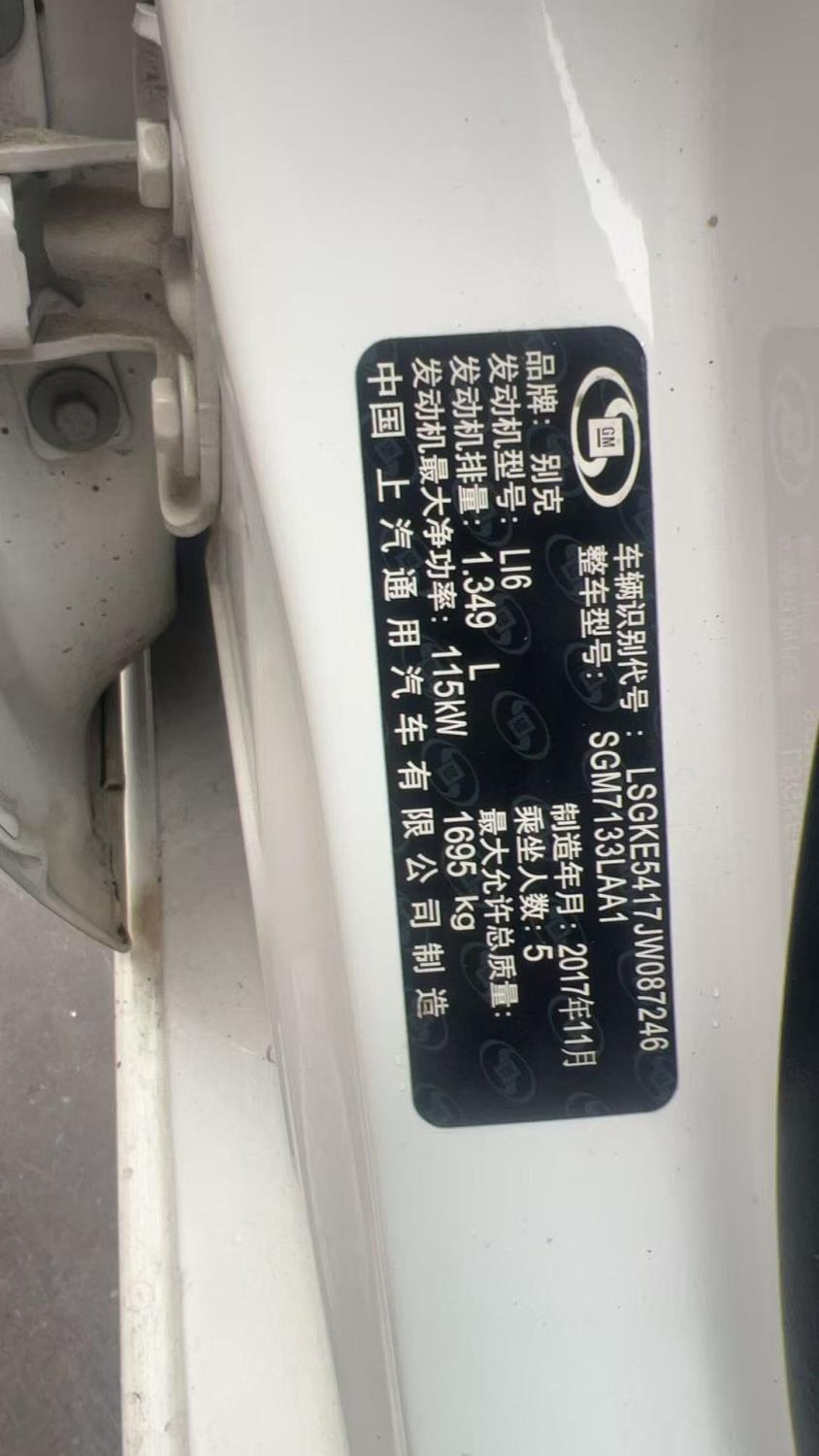 初次登记日期 2017-12-10 车辆名称 别克 英朗