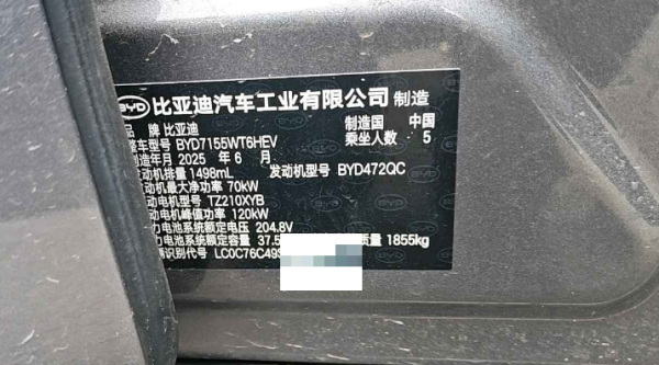 初次登记日期 2025-10-27 车辆名称 比亚迪 秦