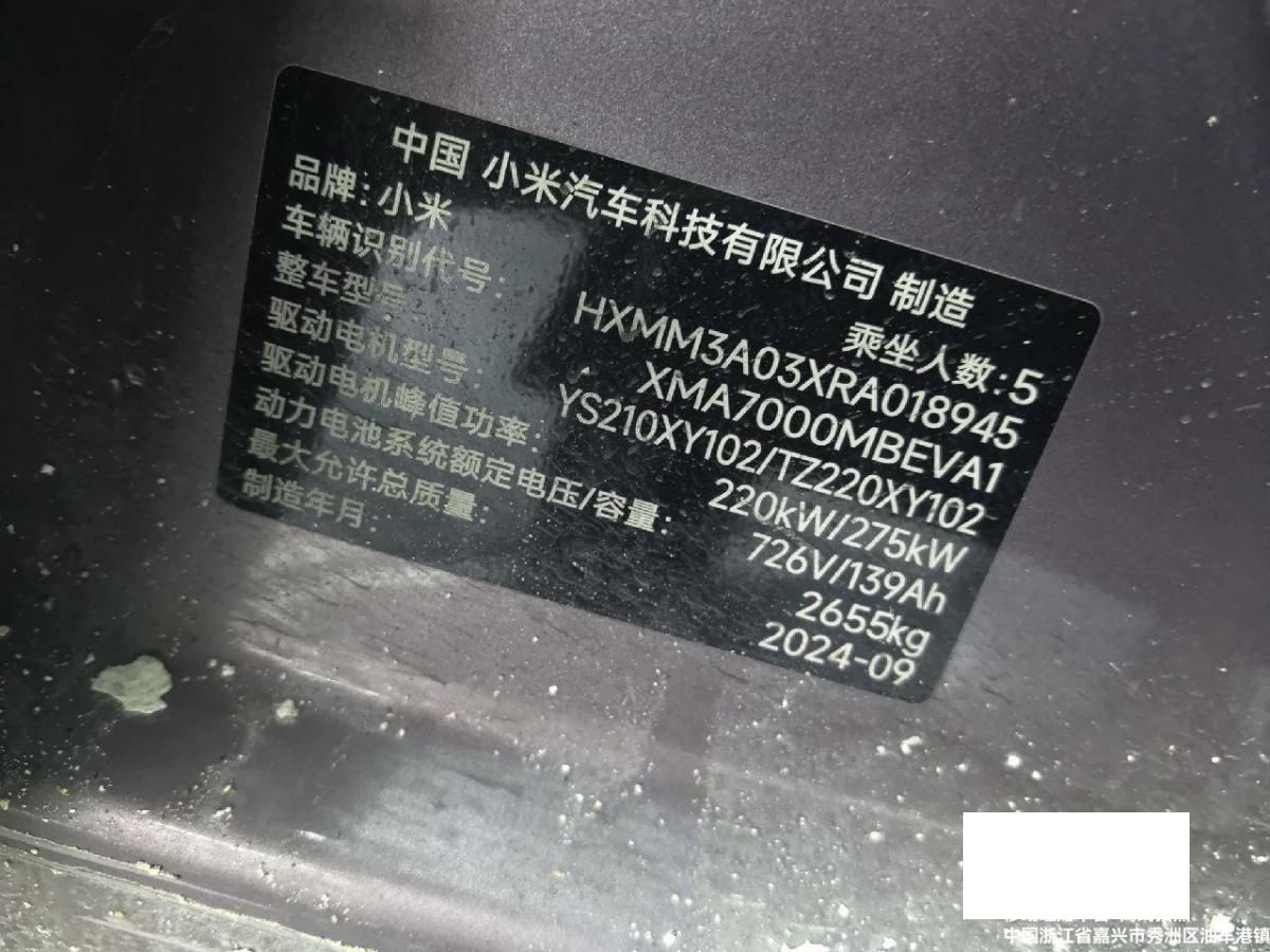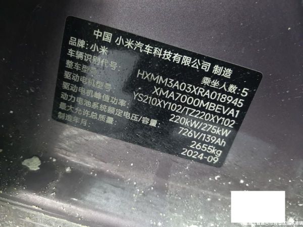 初次登记日期 2024-10-01 车辆名称 小米汽车