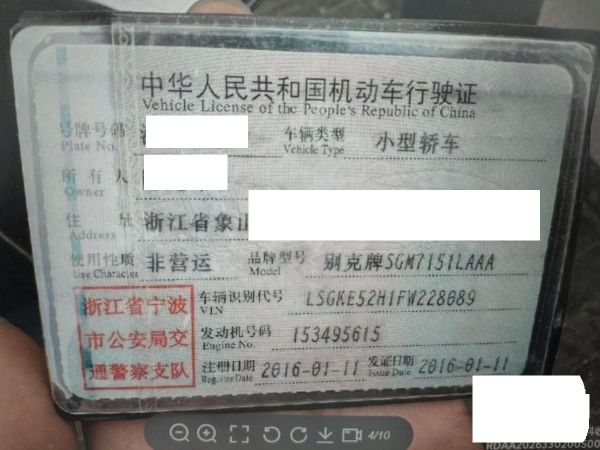 初次登记日期 2016-01-11 车辆名称 别克 英朗